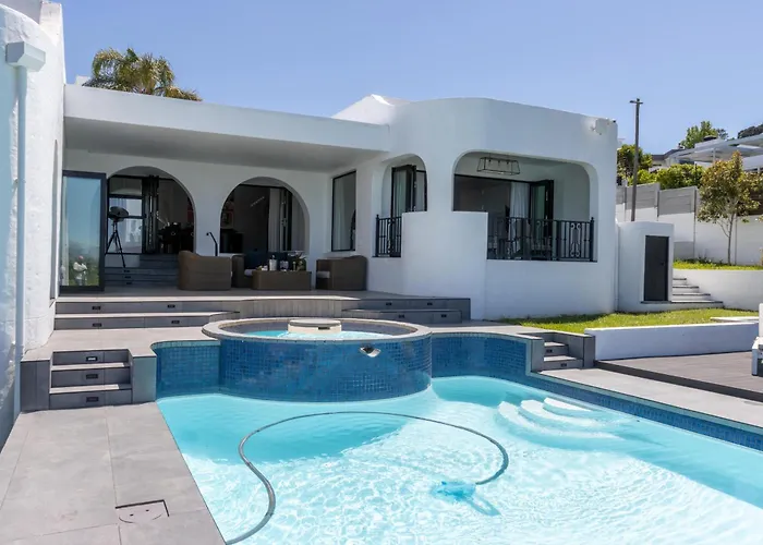 Die Villa Waveren'S Nest Kapstadt verfügt über eine Terrasse mit Aussicht aufs Meer sowie einen Swimmingpool.